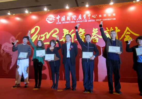 行政经理杨雅(左三)代表北京振威展览有限公司上台领奖