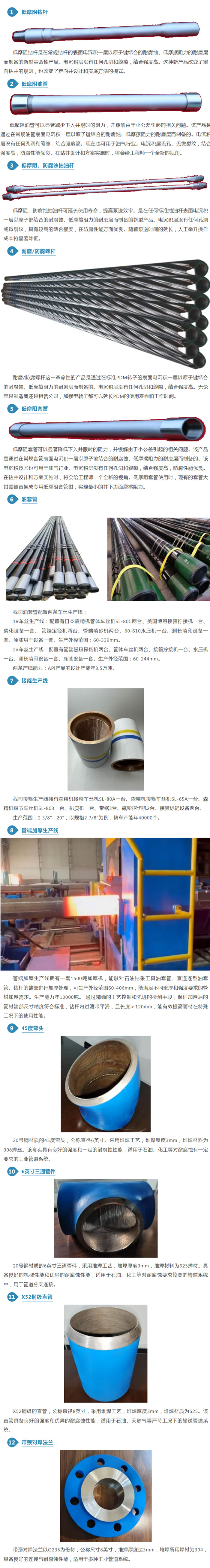 天津市精成伟业机器制造有限公司成立于2008年9月1日,坐落于天津市津南区咸水沽镇海河科技园区内,公司在天津市有三个厂区,分别于津南区和滨 海新区,占地360多亩、20万多平方米厂房,注册资本为1.2亿人民币。公司主要业务包括:穿管芯棒、石油钻采工具产品的表面处理、热丝TIG氩弧焊内外壁防腐 及耐磨堆焊(尤其针对高温高压高腐蚀工艺端)、油套管加厚、水压实验、螺纹车丝成品、接箍成品业务,员工600余人,申报专利36项,年销售收入近4亿元。